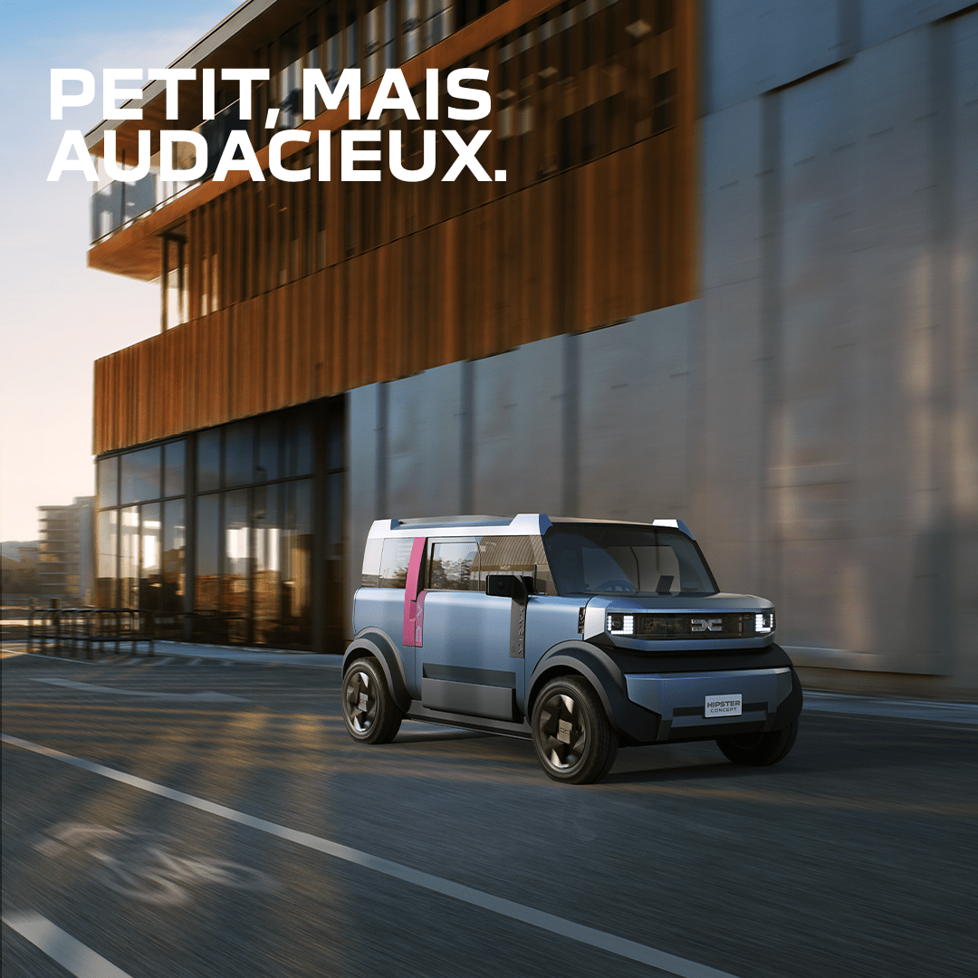 Découvrez comment le Dacia Hipster Concept réinvente la mobilité électrique : un véhicule compact, responsable, pratique et stylé, pensé pour tous les jours mais avec une personnalité marquée.